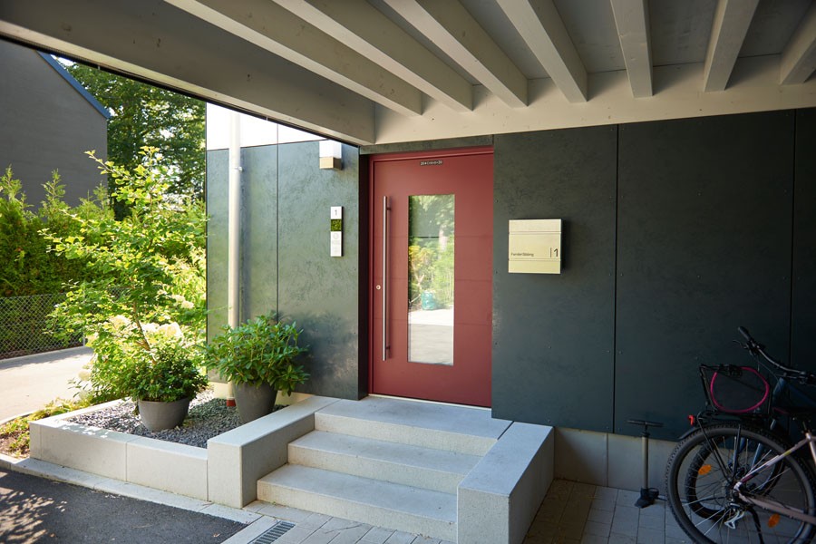 | Besonderheiten | Hybridgebäude als Einfamilienhaus mit vorgefertigten Holztafelelementen mit integrierten Fenstern und einer edlen TRESPA-Fassadenbekleidung |